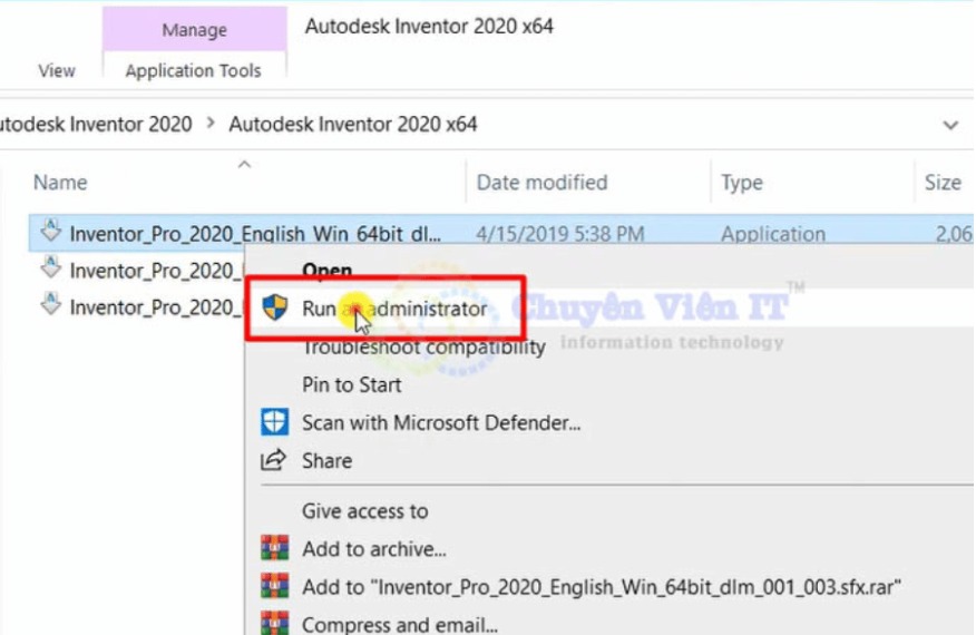 Bước 1: Giải nén phần mềm Autodesk Inventor 2020.