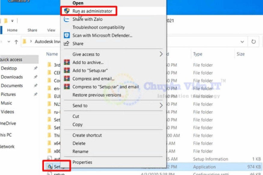 Bước 1: Giải nén bộ cài phần mềm Inventor 2021.