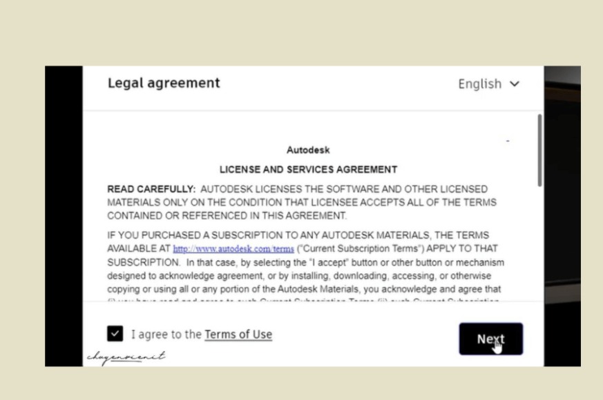 Bước 3: Tích chọn đồng ý điều khoản và nhấn Next.