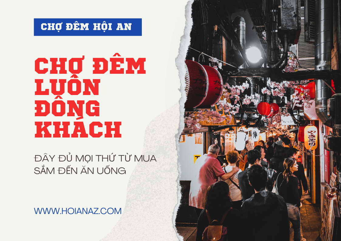Hội An là một địa điểm du lịch hấp dẫn bởi vẻ đẹp yên bình và nét văn hóa phố cổ độc đáo. Chợ đêm Hội An hứa hẹn một trải nghiệm mua sắm và ẩm thực thú vị cho du khách khi đến thành phố.