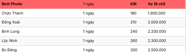 Lưu ý rằng bảng giá dưới đây chỉ mang tính chất tham khảo. Để nhận được báo giá chính xác nhất cho lộ trình mong muốn của quý khách, vui lòng liên hệ trực tiếp đến hotline để được tư vấn và báo giá hoàn toàn miễn phí.